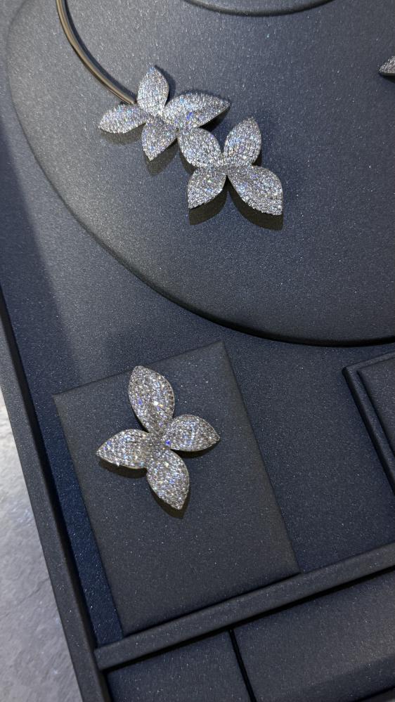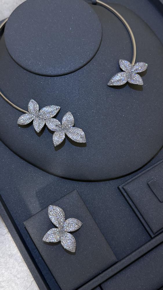 طقم بمحيط عقد حديد مطلي بالروديوم .